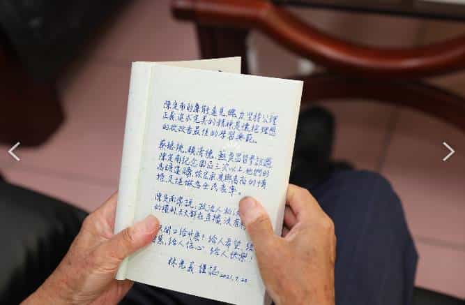 江聰淵市長獲目前擔任陳定南教育基金會董事長的林光義老師贈予此書,對於書中描述林光義、黃瑞疆兩位老師都是從農家子弟的成長環境,憑藉著認真努力的精神與毅力,走向春風化雨的教職之路,充分展現出過去台灣社會底層堅毅不拔的精神,感到敬佩;也對於兩位前輩在戒嚴前後那樣肅殺的氛圍裡頭,願意因為對故鄉土地的熱愛,投入公共事務的這條路,並且藉著與陳定南先生的共事的淵源所寫下的民主軌跡,感到欽佩。