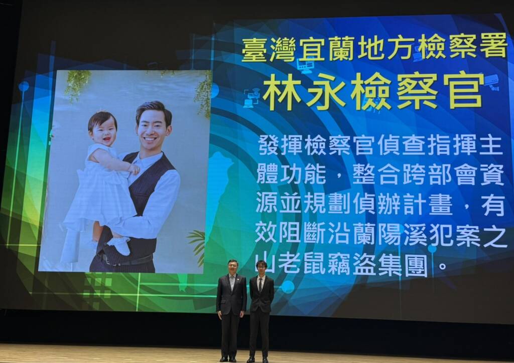 為公開表揚並鼓勵在環境保護與國土保育領域長期付出與貢獻卓著之執法人員,臺灣高等檢察署與環境部環境管理署、農業部林業及自然保育署、內政部警政署於114年10月29日,共同舉辦「114年金環獎頒獎典禮暨全國查緝國土保育及環保犯罪成果表揚大會」,由行政院長卓榮泰親自頒獎及表揚。宜蘭地檢署林永檢察官偵辦橫行蘭陽溪地區之「山老鼠」竊盜集團,成功瓦解長期竊取國有林木之犯罪網絡,查扣並取回國家所有之扁柏、紅檜等貴重林木143支、重達17公噸,榮獲查緝國土保育及環保犯罪有功人員,展現守護國土生態之堅定決心。
