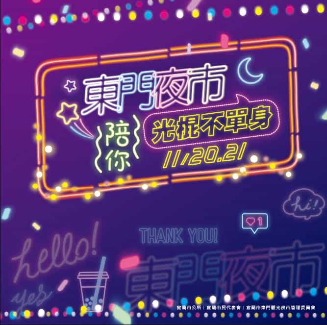 因為疫情關係國人無法出國,國內消費成為國人娛樂首選,為了促進東門夜市觀光消費人潮,今年東門夜市延伸「1111」光棍節概念,在11/20(五)、11/21(六)晚上6:30-8:30推出「東門夜市陪你光棍不單身」活動,尋找姓名中有「依」字同音者,贈送超高折抵的夜市現金抵用券,另外還推出有趣的闖關遊戲,挑戰成功者即可獲「光棍樂抽券」1張,每張樂抽券都可以換取一次抽取「光棍福引機」的機會,獎項除了各種高額抵用券,甚至還有價格500元的牛排兌換券!發券額度高達15萬元!