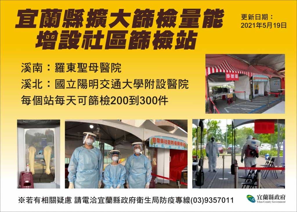 林縣長表示,為擴大篩檢能量,我們將在羅東聖母醫院增設一處社區防疫篩檢站,但為了避免現場等候造成人潮,請大家務必先行預約,進行分流,並禮讓身體不適等民眾優先檢測。