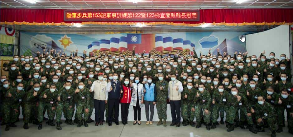 宜蘭縣長林姿妙今(9)日下午前往陸軍步兵第153旅,探視及慰問陸軍第0122、0123梯次縣籍新兵,並致贈每位新兵1份麥當勞套餐,祝福所有新兵們都能快快樂樂入營,平平安安退伍。
