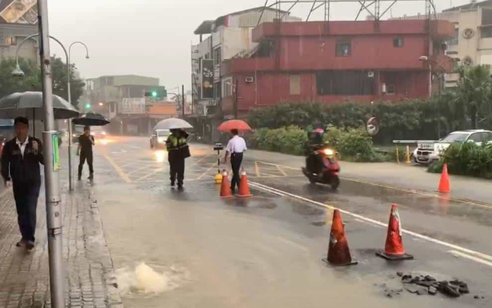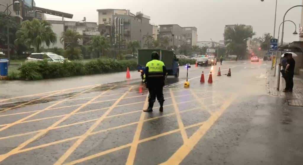 梅雨鋒面造成宜蘭市新月廣場旁路面積水 宜警提醒路過車輛小心通行 Posted on2020-05-212020-05-21Autor北台灣新聞網留下足跡 【北台灣新聞中心】 梅雨鋒面報到大雨急下,造成宜蘭市民權路新月廣場旁路面積水,影響人車通行,宜蘭分局民族所警員楊上緯、邱聖懿、藍國榮於今(21)日下午16時40許獲報即趕赴現場處理,員警現場立即擺放交通錐,並於現場交通疏導及管制,提醒路過車輛小心通行。 宜蘭分局表示針對易發生淹水區域,已主動加強巡邏,並能即時因應,若民眾發現任何災情或需警方協助時,請直接撥打110報案,以避免遭受嚴重損害。 分享此文:FacebookTwitterPinterestPocket