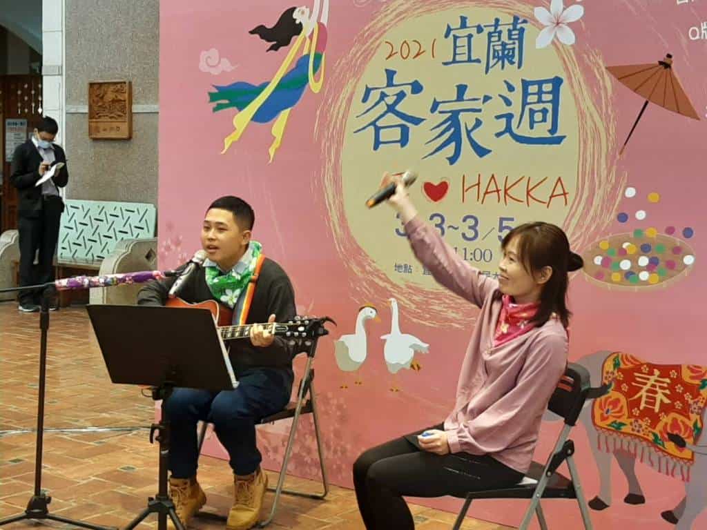 配合中央流行疫情指揮中心秋冬防疫專案,宜蘭縣政府取消110年全國客家天穿日大型活動,改以「客家週」文化體驗方式延續天穿日過年節慶氛圍,今(3)日上午11點在縣府縣民大廳廣場,林縣長穿上客家衫,一起聆聽由縣府同仁帶來的吉他自彈自唱,在悠揚美聲「尞天穿」中為客家週活動揭開序幕,3月3日起至3月5日止,每日上午11點在縣府縣民大廳,「2021宜蘭客家週~I❤️Hakka」,有閒來行尞~