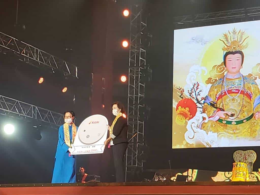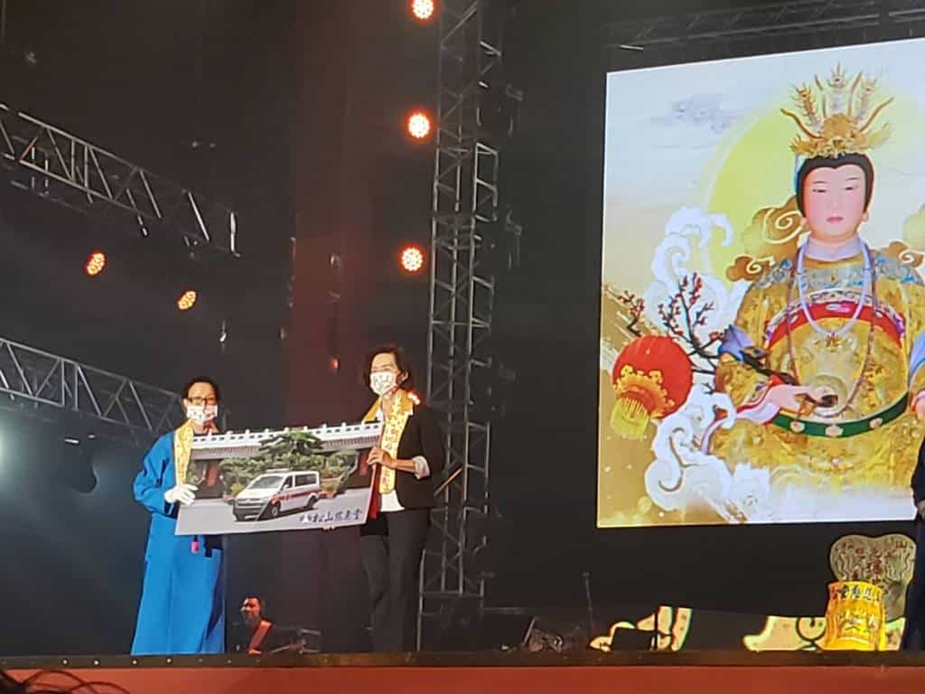 松山慈惠堂於今(2)日在台北小巨蛋舉行2021臺北母娘文化季弘揚母愛音樂會暨救護車、住宅用火災警報器捐贈儀式,並由林姿妙縣長代表受贈。