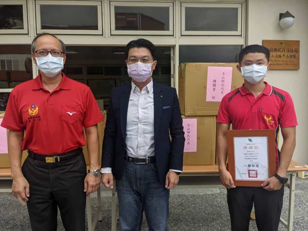 冬山鄉民代表游閔吉今日捐贈宜蘭縣政府消防局300件隔離衣,在宜蘭縣政府消防局第二大隊冬山消防分隊辦理捐贈,由第二大隊大隊長林文雄代表受贈。