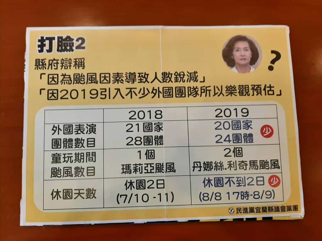 第二、辯稱「因2019引入不少外國團隊所以樂觀預估」以及辯稱「因為颱風因 素導致人數銳減」。