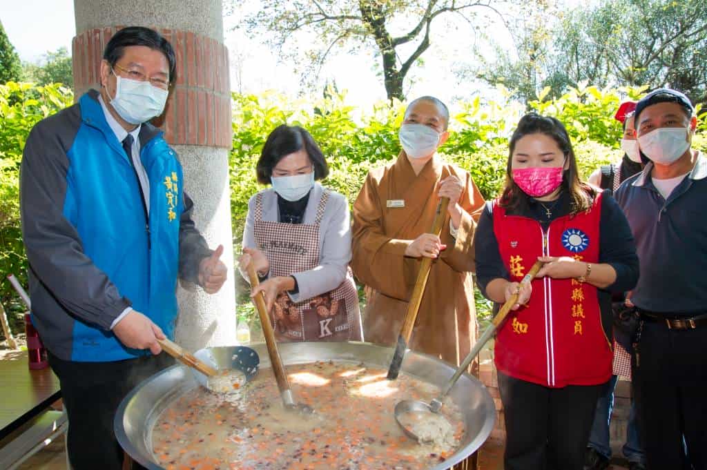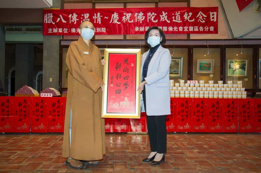 縣長林姿妙表示,感謝佛光山蘭陽別院住持妙勤法師、義工們,在新的一年帶著滿滿祝福及熱騰騰臘八粥,與縣府同仁及洽公民眾結緣,透過佛寺加持的這碗「臘八粥」,藉此宣揚佛陀成道、也讓大眾獲得「健康平安」,並分享佛教慶祝佛陀成道喜悅、與緬懷佛陀慈悲智慧的精神,來促進祥和社會的力量。