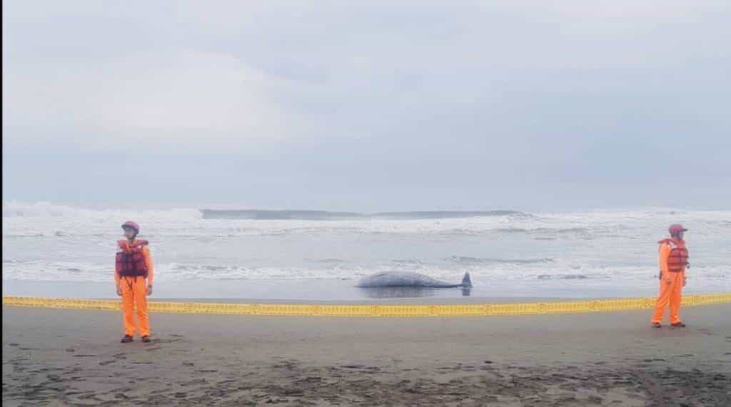 宜蘭縣政府農業處及中華鯨豚協會人員接獲通知後於上午1011時陸續抵達現場,經確認死亡鯨豚為柯氏喙鯨,長度450公分,後續由中華鯨豚協會人員現地實施解剖採樣後掩埋。