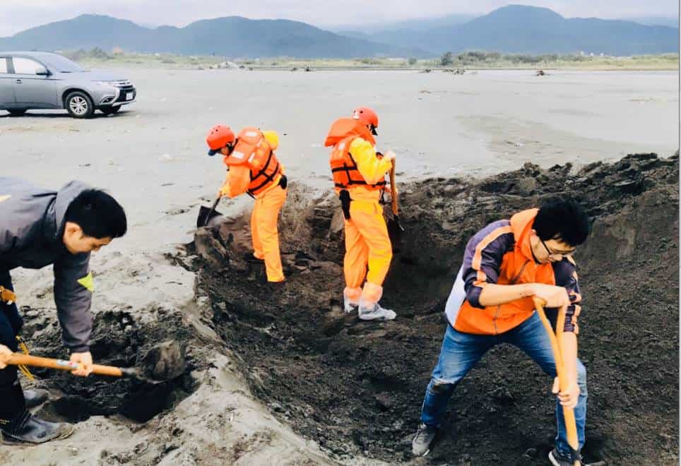 海巡署北部分署第一岸巡隊今(19)日上午接獲民眾通報,於宜蘭新城溪沙灘發現乙隻死亡鯨豚,隨即派遣線上巡邏人員前往處置,並聯繫相關單位到場,由中華鯨豚協會人員現地實施解剖採樣後掩埋。