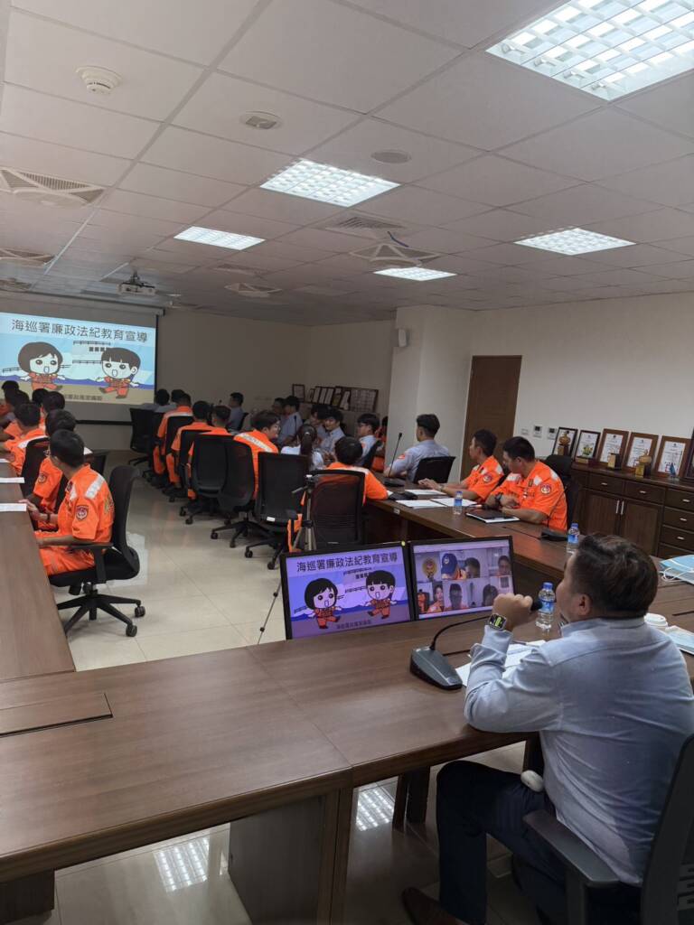 為強化同仁法紀意識、財務規劃能力及風險辨識力,海巡署北部分署今(19)日下午於宜蘭地區所轄第一岸巡隊舉辦「清淨藍海‧廉能海巡」法治教育宣導活動,特邀茗森法律事務所許育誠律師擔任講師,深入解析「海巡署常見違法案例、財務風險案例、國安洩密、常見詐騙手法、消費者債務清理條例簡介及陸海空軍懲罰法修正」等六大主題,並提供現場法律諮詢服務,共有89位同仁參與。