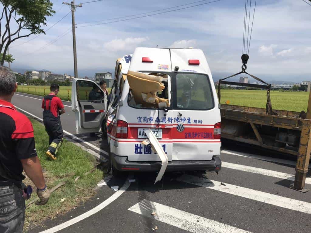 宜蘭縣政府消防局壯圍分隊救護車6月19日09時23分執行壯圍鄉新南路創傷(跌倒)救護,於送醫途中行經宜蘭市縣民大道二段與縣民大道二段726巷交叉路口與一輛自小客車發生車禍。