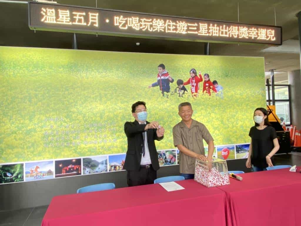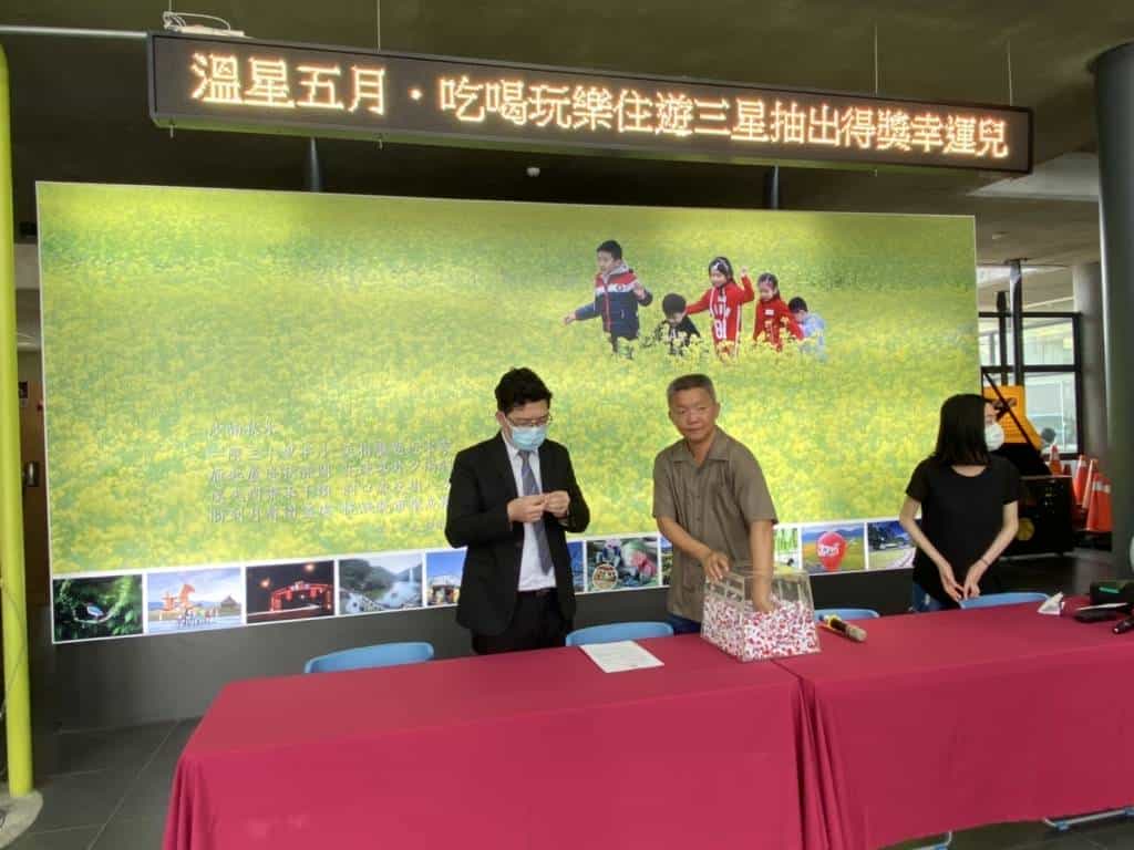 三星鄉公所溫星五月 吃喝玩樂住遊三星,今(10)日在三星鄉公所一樓大廳舉行抽獎,在陳馨強律師見證下,從2千5百多名參加民眾,抽出各獎項總共879個幸運兒。