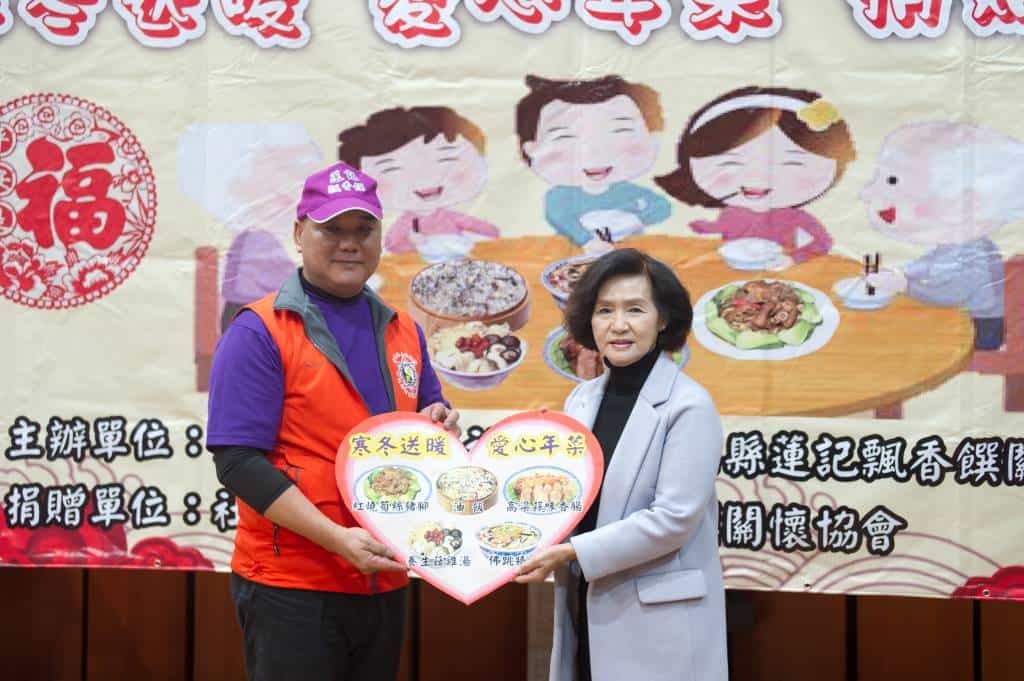 時值歲末寒冬之際,社團法人宜蘭縣蓮記飄香饌關懷協會募集522份愛心年菜,贈予宜蘭縣政府物資銀行、礁溪鄉公所及縣內社福團體,並於今(15)日上午在宜蘭縣社會福利館,由縣長林姿妙代表接受捐贈,讓弱勢家戶們能在春節前夕感受滿滿的愛與關懷。