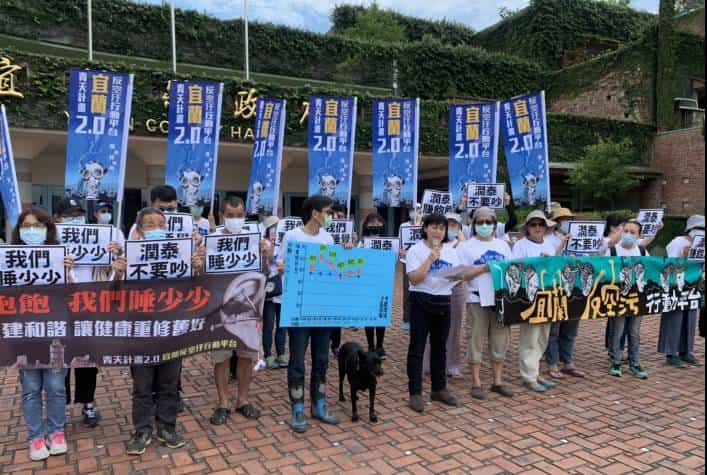 一群來自冬山鄉的居民今天上午在縣府廣場前拉起白布條,抗議潤泰水泥廠的噪音問題,並遞交陳情書,要求環保局每周至少稽查兩次,直到改善為止,並希望只要稽查結果超標就罰款,不要以限期改善作為藉口,讓潤泰不斷拖延。縣府由環保局長黃釧出面接受民眾陳情,並承諾環保跟居住相關的議題一定是跟民眾站在一起。