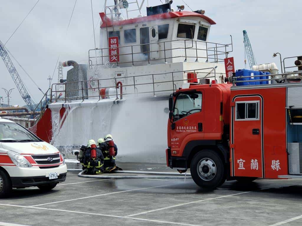 為強化漁船火災搶救能力, 宜蘭縣辦理「109年漁港漁船火災搶救演練」