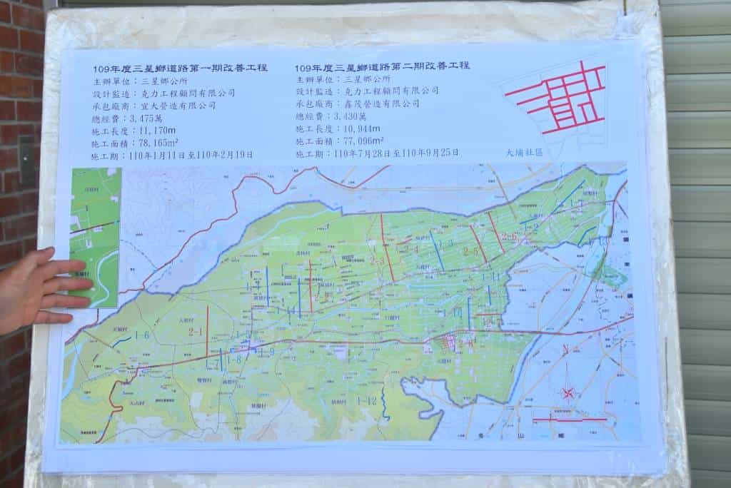 三星鄉幅員遼闊,行政管轄區域面積144平方公里,其中村里道路長達316公里,產業道路亦有26公里,道路之管養造成鄉政沉重負擔,長久以來,因欠缺經費,致道路品質不佳。公所為謀求道路品質之提昇,積極提案尋求中央經費補助,辦理鄉轄道路之改善。』這幾年獲得中央大力支持,完成全鄉近16萬平方公尺道路鋪設,其中最受關注的工區,就屬
