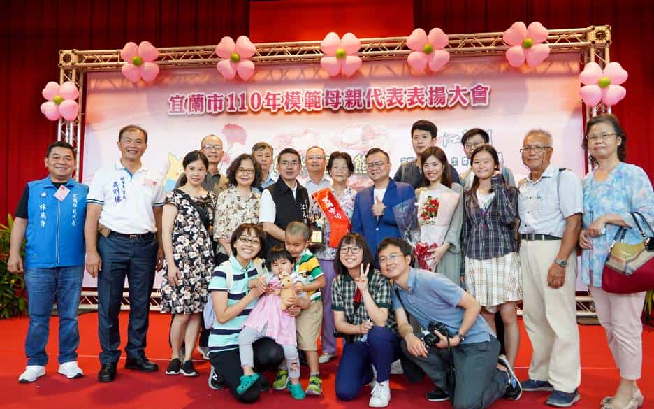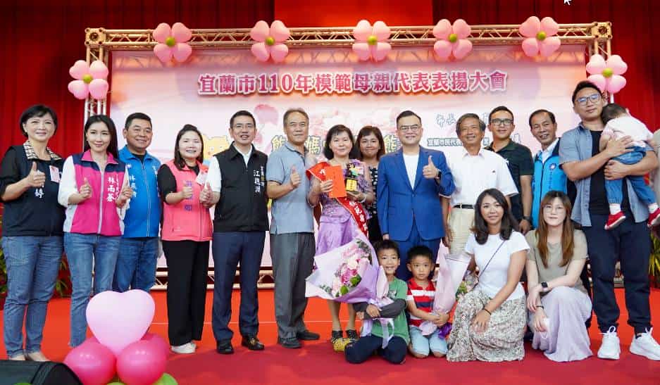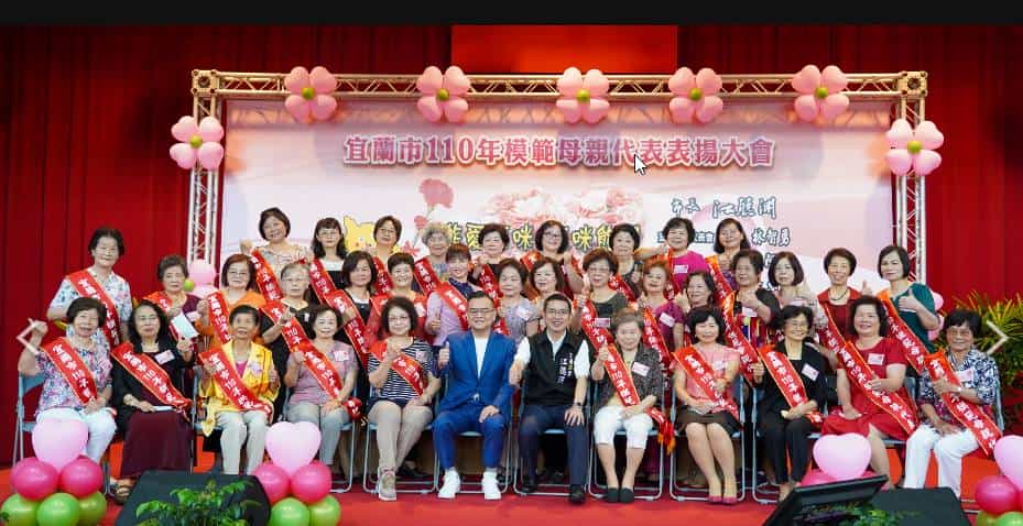 宜蘭市5月08日於黎明國小體育館舉辦110年模範母親代表表揚活動,會中除表揚37位來自各里辦公處及市民代表會推薦的模範母親代表外,市長江聰淵為每位受獎的母親們準備了甜蜜的蛋糕和甜點,讓媽媽和子女們共享蕯克風現場演奏放鬆的相聚時間。
