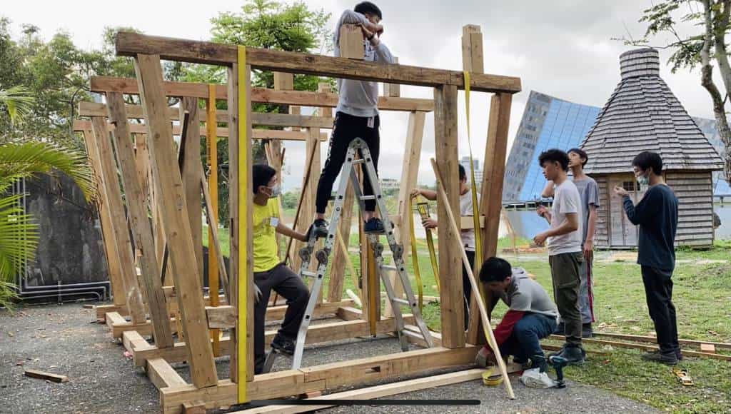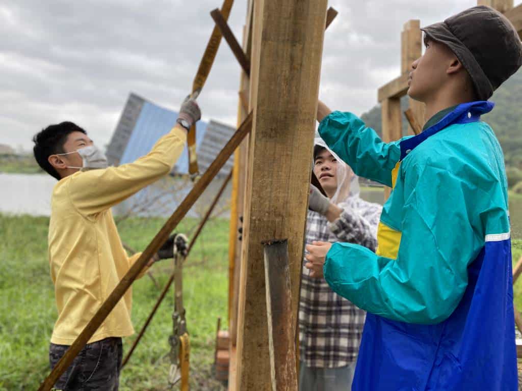 保護環境減少碳排放是當今全球不可忽視的重要議題,在台灣,建築物消耗的能源與二氧化碳排放量比例高達29%,建築產業消耗高量的水泥資源,並產出大量營建廢棄物而威脅我們生存所在。要實現永續環境的低碳生活,要從環境、能源、安全與健康舒適的反思中著手,木造建築將成為未來建築的趨勢。展覽利用在地的自然素材,汗得學生以擅長的大型木作為主,結合當地的歷史進程及自然特色,以創意構築的形式反饋土地,強化參觀者與土地、自然的連結。