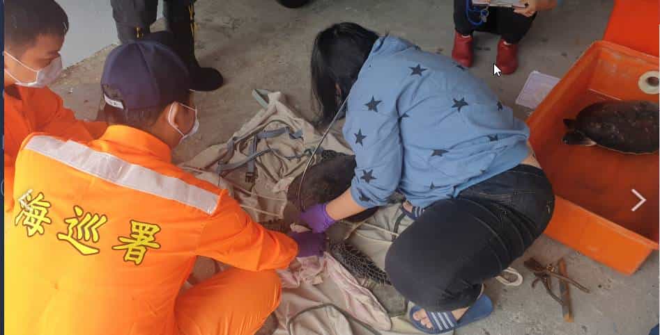 海巡署北部分署第一岸巡隊大里安檢所石城執檢站於今(13)日上午11時03分,接獲民眾通報,「光O12號」漁船在定置漁網區誤捕海龜2隻,立即通報相關單位到場協處,並進行野放。