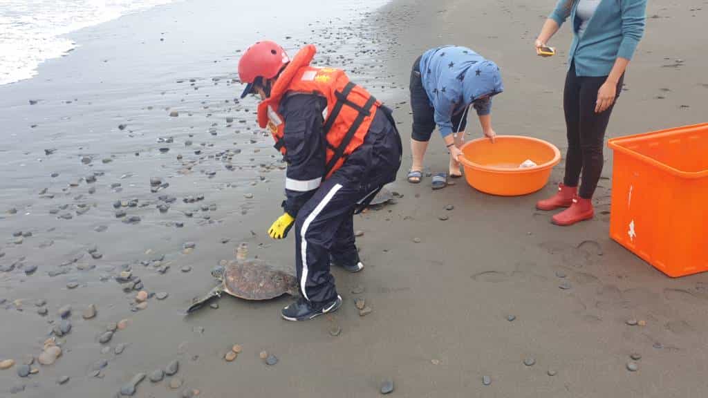 第一岸巡隊表示:生態保育為海巡署重要工作職掌之一,維護海洋生態及資源永續發展刻不容緩,民眾如在岸際發現有海龜或鯨豚等保育類動物擱淺或海洋環境汙染等情事,可立即撥打「118」服務專線,大家共同守護這片美麗的海洋。