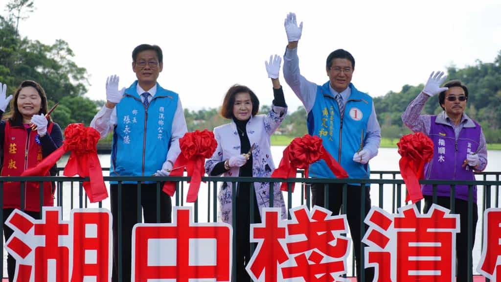 鄉長張永德致詞中,感謝縣府協助礁溪鄉完成龍潭『湖中棧道』,以及近年宜蘭縣政府工旅處在周邊景陸續觀完工之下,可以媲美日本名湖山中湖之美,今天『湖中棧道』完成,又多了一處特色景觀,相信可以帶動更多遊客來到到礁溪。張鄉長同時向縣府建議,可否在湖中棧道內沿部份種些荷花,讓景觀更美更悠雅。