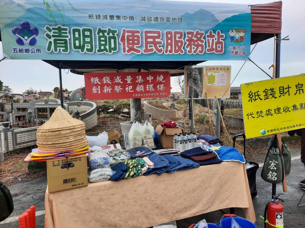 清明佳節民眾返鄉掃墓祭祖時節將至,為便利扶老攜幼鄉民掃墓祭祖,五結鄉公所於4月5日在於鄉內四大公墓設置6處便民服務站,提供鄉民各式掃墓所需用具,希能營造更友善的清明掃墓環境。
