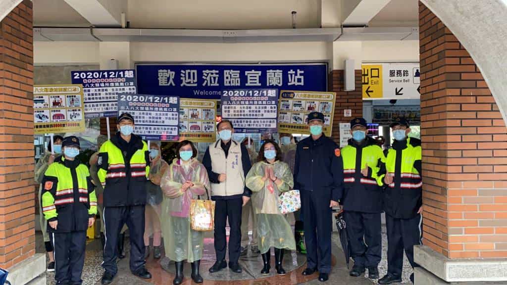 中央流行疫情指揮中心自12月1日起宣布啟動的「秋冬防疫專案」,至今已實施2週。為再次強化民眾了解出入八大類場所戴口罩的重要性,衛生局徐迺維局長今日親自帶領衛生局所員工、志工在警察局宜蘭分局林建良分局長及員警的陪同下至宜蘭火車站,大賣場、零售商(超商)、銀行、診所、藥局、旅社、百貨公司等八大類室內場所進行稽查。經查民眾都相當配合佩戴口罩,少數未配戴口罩者,經勸導後也都能將口罩戴上,再進入該室內場所。