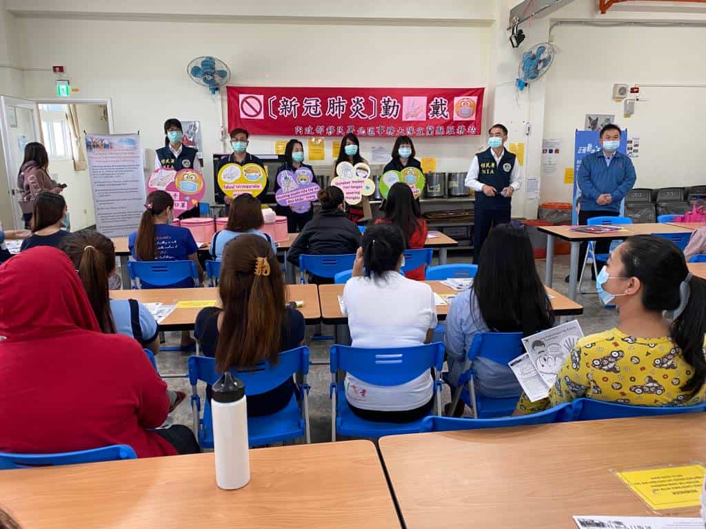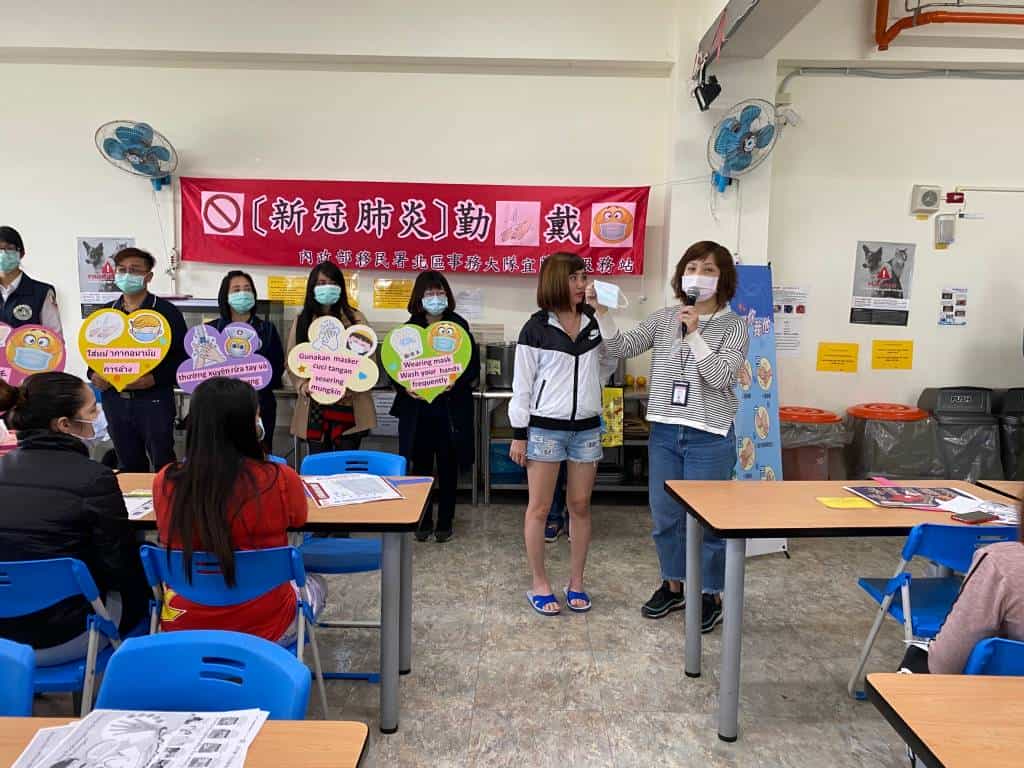 COVID-19武漢肺炎(新型冠狀病毒)漫延迅速,正侵襲著世界各地的人們,生活於臺灣的新住民及移工朋友,卻容易因語言及習慣成為防疫訊息傳遞缺口,為避免防疫出現破口,內政部移民署北區事務大隊宜蘭縣服務站、專勤隊、收容所等單位,特於今日上午會同宜蘭縣政府衛生局、勞工處、蘇澳衛生所及新住民關懷協會等網絡單位,至「耀華電子股份有限公司」及南方澳移工聚會所,為移工朋友進行「防範〈新冠(武漢)肺炎〉勤洗手、戴口罩」防疫宣導。