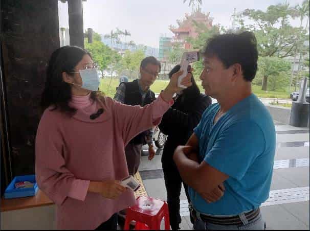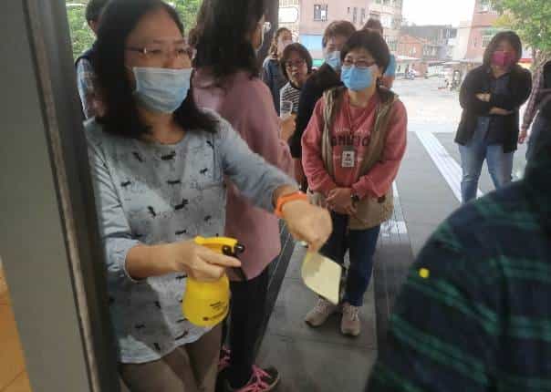 凡欲進入公所的民眾(包含員工在內)有合乎標準體溫者,即貼上『圓型貼紙』以為識別;但是,如果經過『兩支額溫槍』分別量測之後,均發現『超過攝氏37.5度者,一律禁止其進入公所』並勸導其儘速就醫。同時對於有感冒或咳嗽症狀者,一律必須戴口罩才能進入,以防範日益嚴重的『新型冠狀病毒』傳染性肺炎。