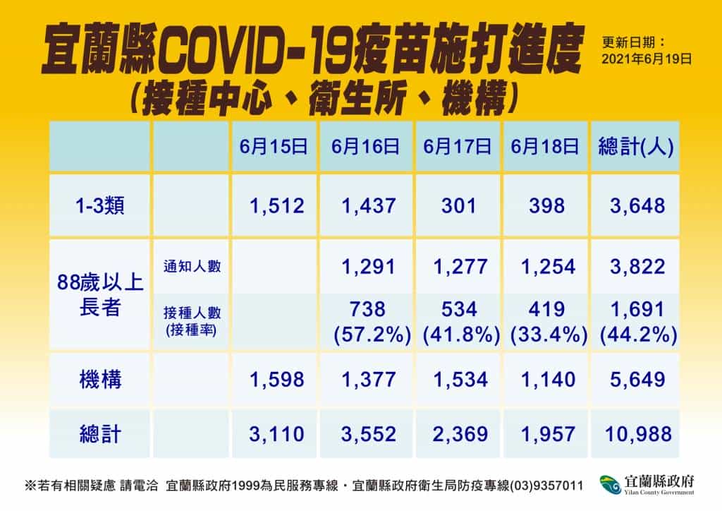 其中,88歲以上長者接種狀況,昨(18)日通知1254名長者,實際接種419人,接種率為33.4%;累計三日(16、17、18日)通知3822名長者,實際接種1691人,接種率為44.2%。