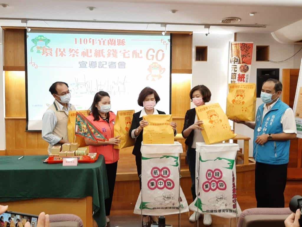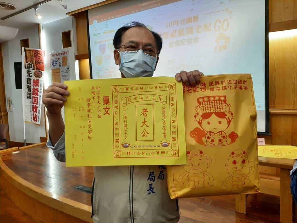 農曆七月將至,為減少焚燒金紙造成空氣污染,宜蘭縣政府環保局今年為民眾特別設計「紙錢宅配袋」,民眾可至宜蘭縣政府、環保局、鄉鎮市公所、各里村辦公室及23家寺廟免費索取(位置詳https://reurl.cc/KAoyqj,數量有限發完為止), 共計有182處紙錢集中代收點回收。