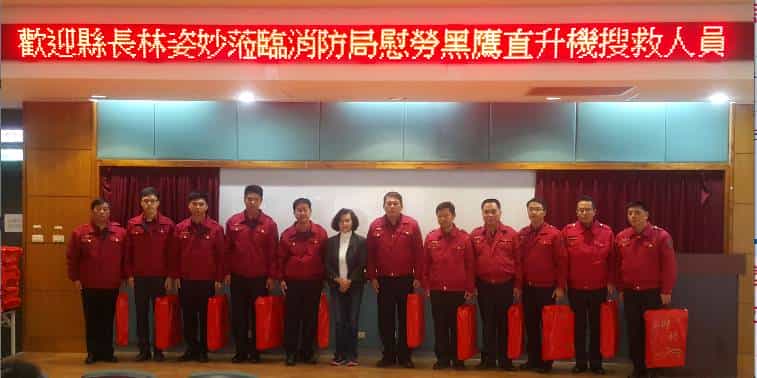 國軍黑鷹直升機迫降於北宜山區,造成 8 死 5 傷意外事件。宜蘭縣長林姿妙為感謝消防局搜救人員辛勞,於今(10)日親自至消防局表達慰勞 之意。