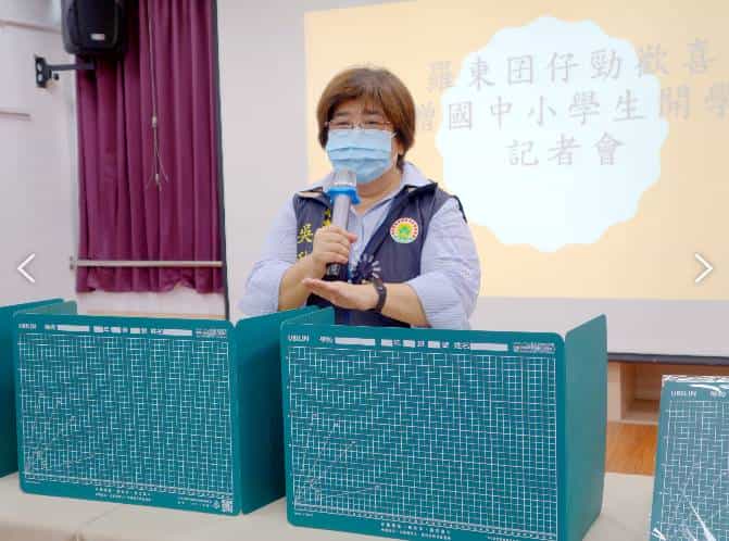 羅東鎮公所為使鎮內各國中小校園防疫工作益趨完備,吳秋齡鎮長在傾聽鎮內各校校長意見後,用心準備一份環保防疫隔離桌墊,作為鎮內8所國中小學生110學年度的開學禮物。