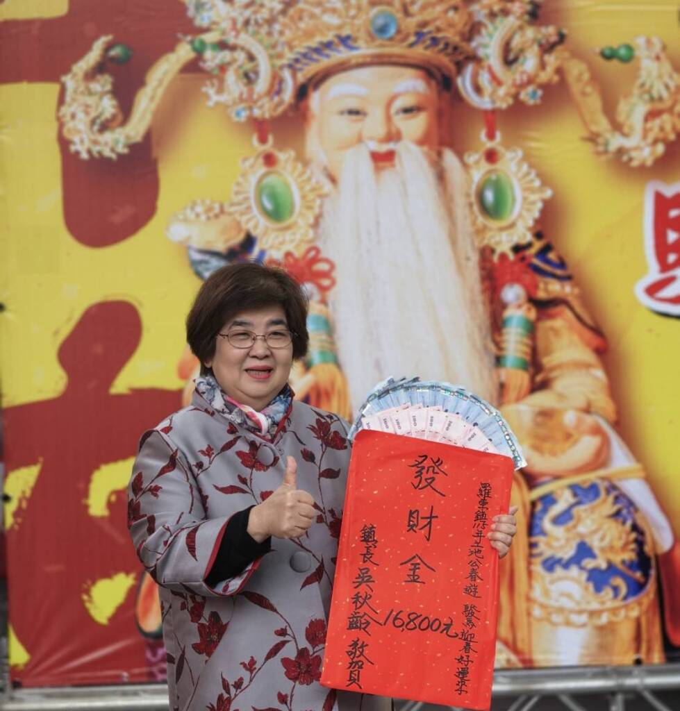 鎮長吳秋齡歡迎民眾與家裡土地公攜家帶眷,闔家一起來恭祝福德正神聖誕千秋,藉由土地公的庇佑,祝大家闔家平安、駿馬吉祥。