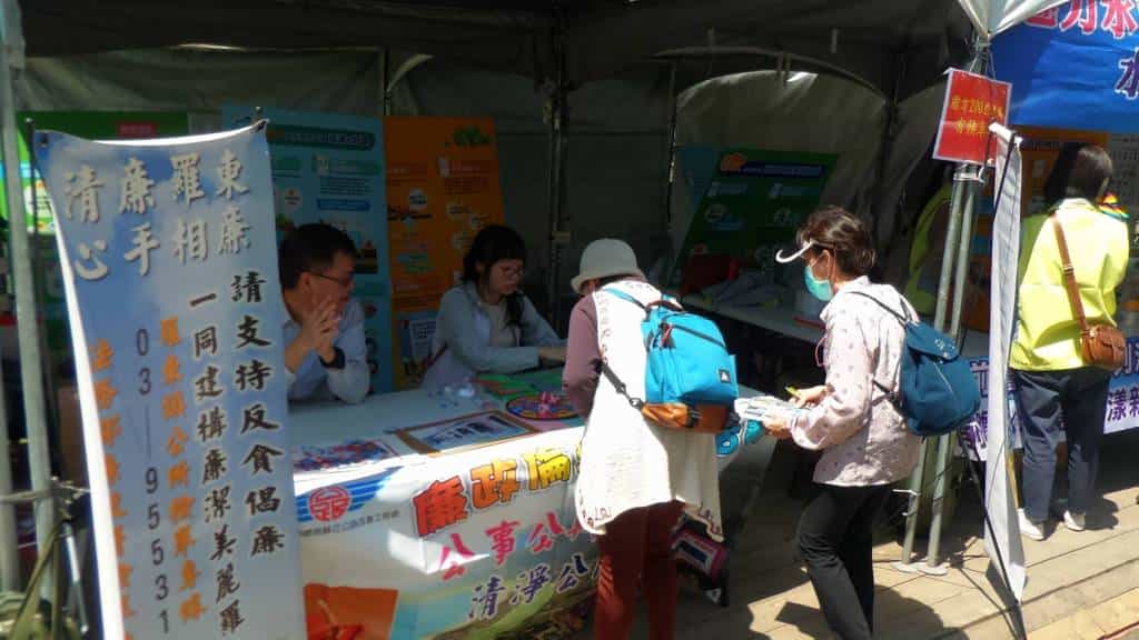 政風每年也配合活動在會場設攤進行廉政社參宣導,今年羅東公所結合交通部公路總局蘇花公路改善工程處共同辦理廉政宣導,將廉政議題設計成小遊戲邀請民眾一起互動,把生硬難懂的政策法令轉變為活潑有趣的廉政小遊戲,年齡層從3歲幼童到80歲奶奶都能接受並輕鬆參與,當天現場參與廉政宣導的民眾對政風單位的用心宣導多持正面肯定及讚賞。