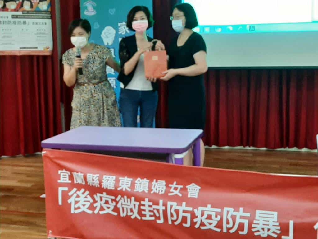 羅東鎮婦女會今天下午在羅東鎮立幼兒園舉辦「『後疫微封防疫防暴』倡議交流會」,羅東鎮長吳秋齡、縣議員黃琤婷及婦幼專家,到場感謝縣民在防疫期間,忍受居家生活,特別的辛苦的照顧者與被照顧者彼此相處的辛勞。也感謝大王冷飲店贊助檸檬汁給與會者。