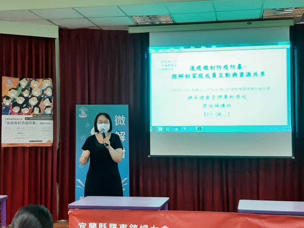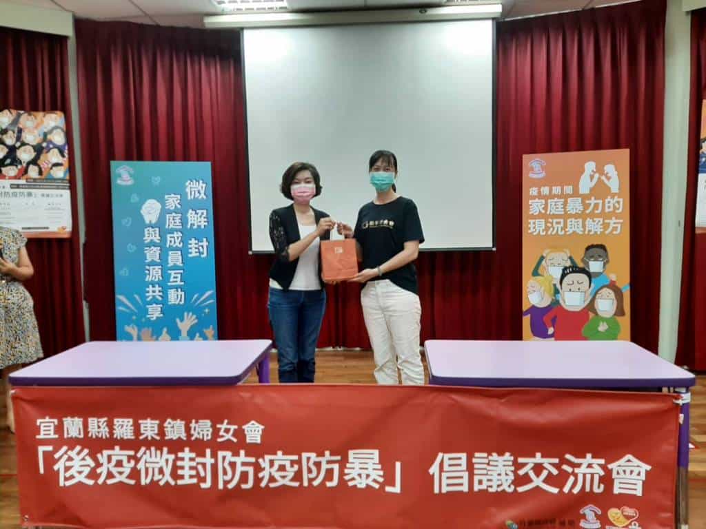 此項「『後疫微封防疫防暴』倡議交流會」邀請勵馨基金會宜蘭分事務所執行長張玉如及耕莘健康管理專校周雨樺講師與參加者分享防暴的要訣。