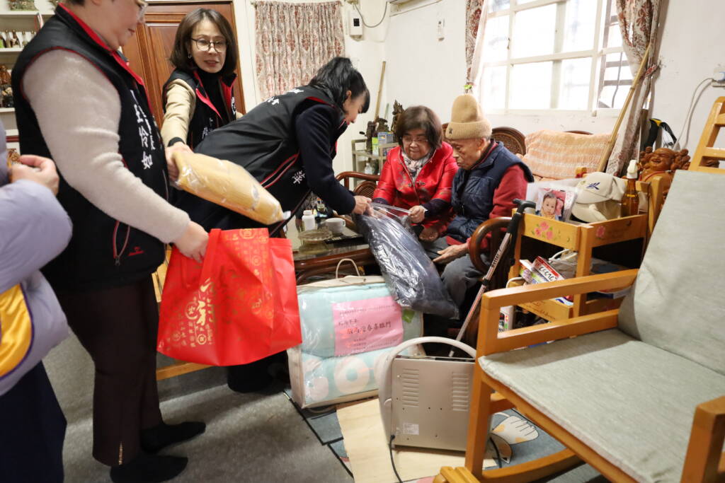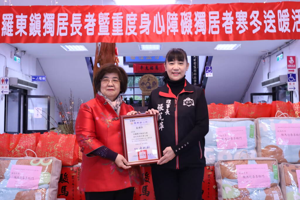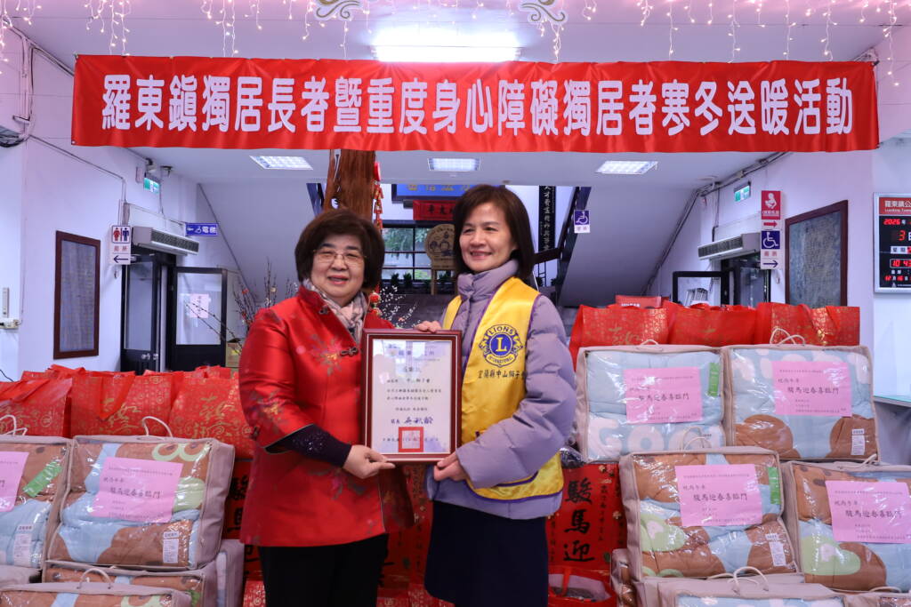羅東鎮公所邀集中山獅子會及不動產代銷經紀商業同業公會共同關懷弱勢族群,特別準備包含舒服被、背心、圍巾及手套等25份物資,希望本鎮獨居長者及重度身心障礙獨居者在歡慶年節時都能溫暖過冬,而這一份份飽含心意的物資會經由志工的協助,及時送至各位獨居長者手中。