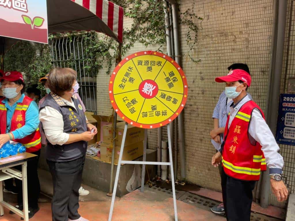 - 鎮民於活動日取出表列資源回收物至羅東鎮公所清潔隊廊道兌換宣導品。本年度除兌換有機土外再加碼送轉輪盤遊戲有機會得到各式生活家用宣導品