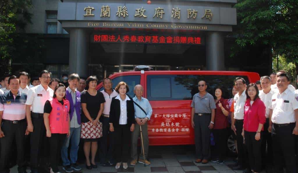 宜蘭縣政府消防局今(7)日上午舉行「秀春教育基金會」捐贈消防救災車典禮,由林姿妙縣長主持並代表受贈。縣長林姿妙由衷感謝秀春教育基金會這次的捐贈,及平常為社會的無私奉獻,讓我們感到無比溫暖,我們也會善用受贈的物資發揮最大的效用,並讓愛心持續傳遞下去。