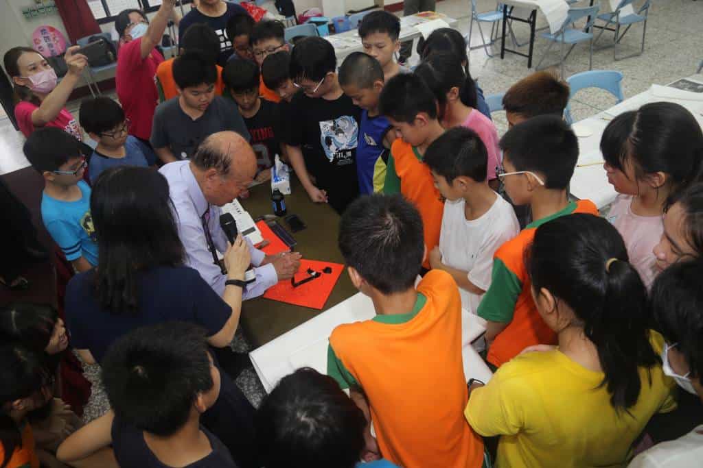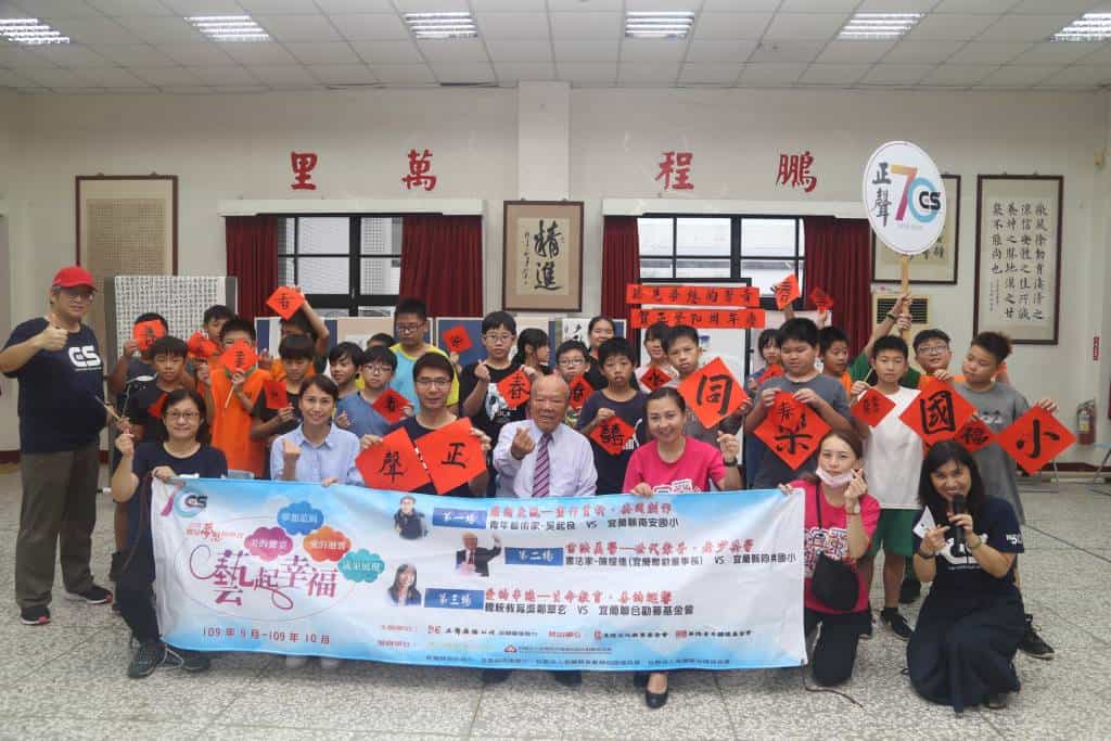 正聲宜蘭台「聽見夢想的聲音-藝起幸福」系列活動,日前到員山鄉同樂國小,27位從未拿過毛筆的小朋友圍著高齡82歲的書法家–宜蘭縣書法學會陳耀德理事長,欣賞他老人家一筆一畫的美麗文字;隨後也紛紛拿起毛筆,體驗揮毫的樂趣。