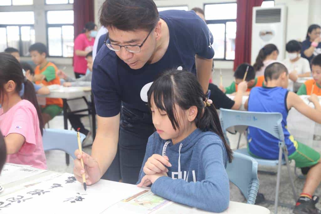 第一次拿著毛筆、桌上鋪著棉紙,許多同學似乎都不知所措,陳建谷台長和同仁陸續教孩子們執筆的手勢,運筆的方法,心中不禁感謝年少時拿過毛筆寫過字,這回可派上用場了。陳建谷台長表示,系列活動與宜蘭縣聯合勸募基金會合作走進校園,帶來不同的藝術體驗,分享大師的人生故事,透過這次接觸筆墨的經驗,也許讓同學逐漸認識傳統文字之美。