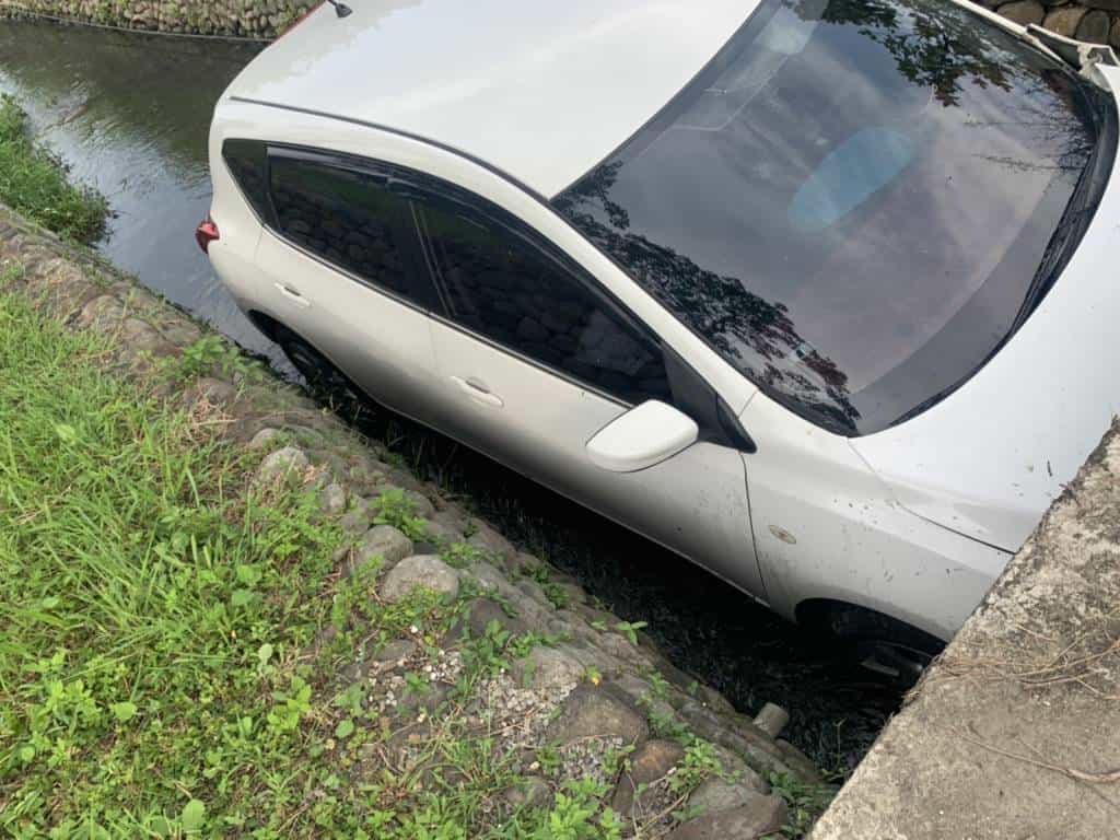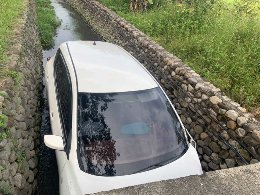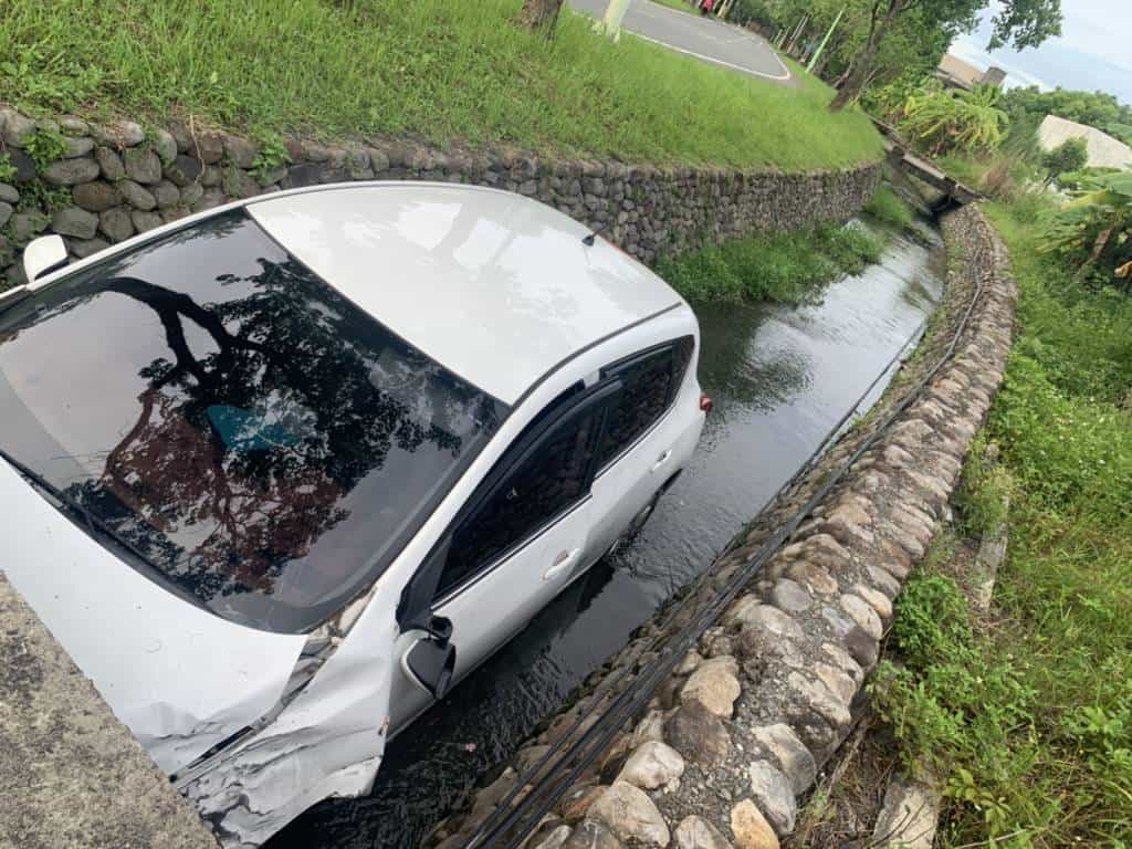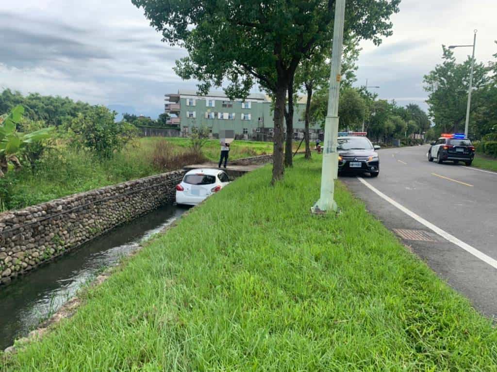 自小客車未注意車前狀況 不慎駛入路邊排水溝內