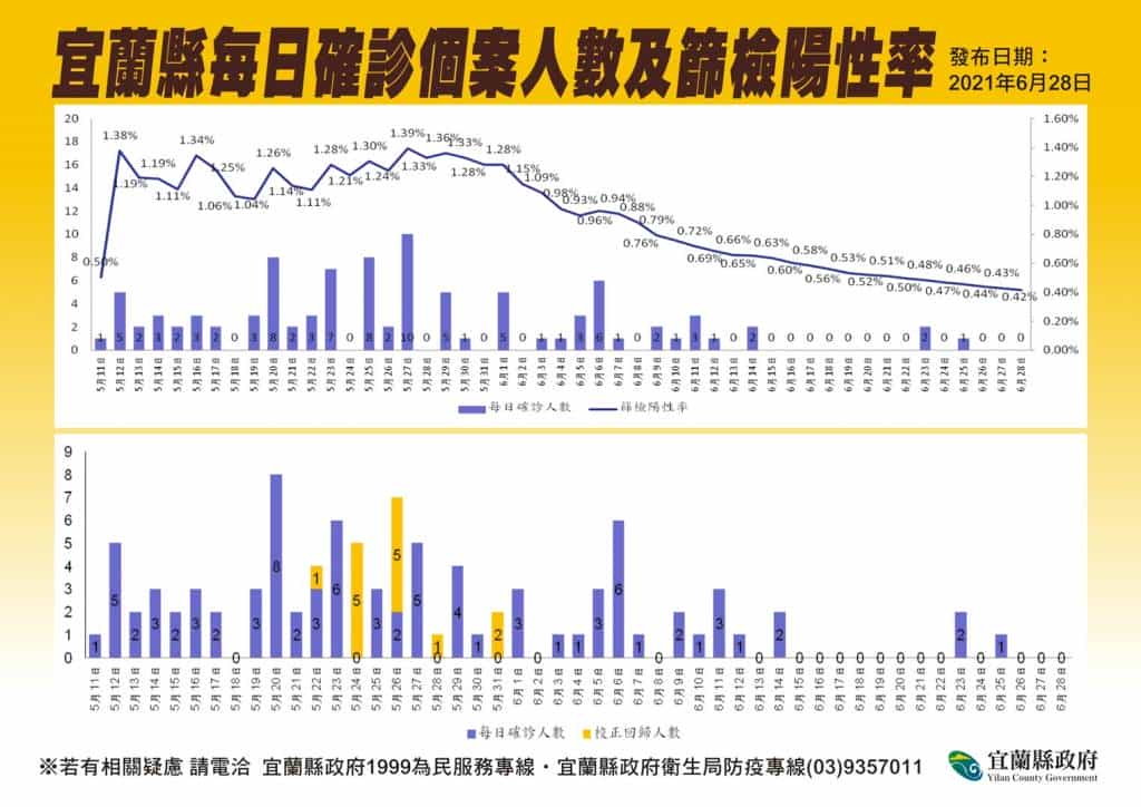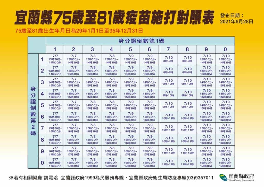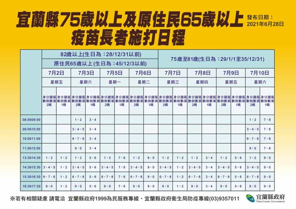 宜蘭今(28)日無新增個案。宜蘭縣長林姿妙表示,縣府已規劃7月2日起至7月10日接續為75歲以上長者(65歲以上原住民)施打莫德納疫苗,「施打疫苗通知單」也將陸續由民政系統發送。林縣長感謝各公所的協助,並請符合接種資格的民眾依時陸續前往接種。