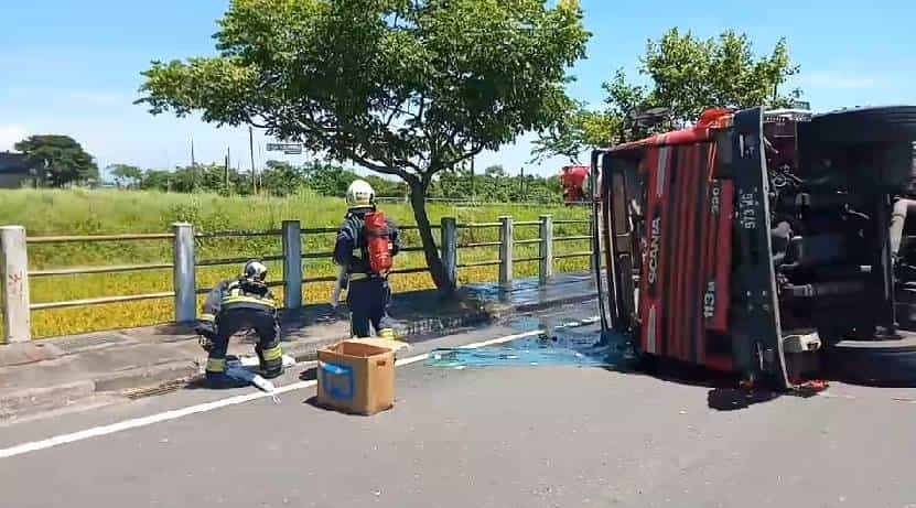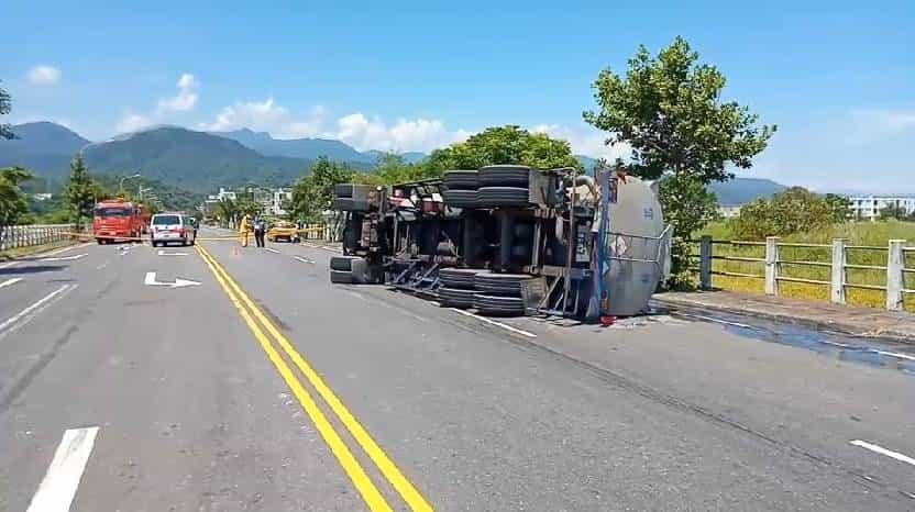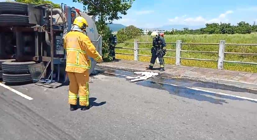 消防局表示,現場硫酸槽車翻覆,硫酸從車頂人孔洩漏,司機(賴○○ 53歲 )因車禍導致頭部撕裂傷,意識清楚,由馬賽91送往聖母醫院。