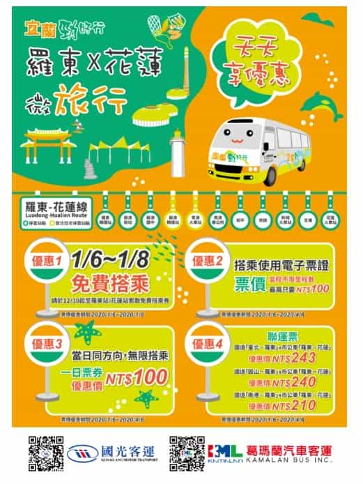 9線蘇花公路山區路段改善工程,將於1月6日下午4時開放全線通車,宜蘭縣府為活絡東部公路運輸與民眾轉乘運具選擇多元性,提供民眾往返花蓮便捷運輸服務,規劃新闢「【201】羅東轉運站-花蓮火車站」市區公車路線,由葛瑪蘭汽車客運與國光汽車客運聯合營運,將配合蘇花改通車同時(1月6日下午4時)辦理通車試營運。林姿妙縣長表示,新路線、新車輛、新交通廊帶,讓宜花東花木蘭聯盟盟約「共同要求中央完成台灣東部高速道路及鐵路網,建構台灣東部一條安全回家的路」大大的跨出一步,宜蘭縣政府與大家共榮發展,拚出宜蘭好生活!