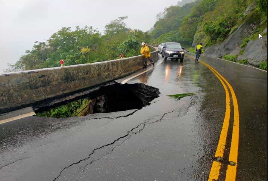 蘇澳分局轄區於今(1)日中午13時40分接獲報案,稱於台九丁線38.4公里處(武塔段)道路路基掏空,阻斷道路影響人車通行。為維護用路人安全,獲報後由本分局武塔派出所立即派員前往協助交管指揮,提醒路過人車小心通行,經現場瞭解目前無人員受傷,且無車輛行經發生事故。