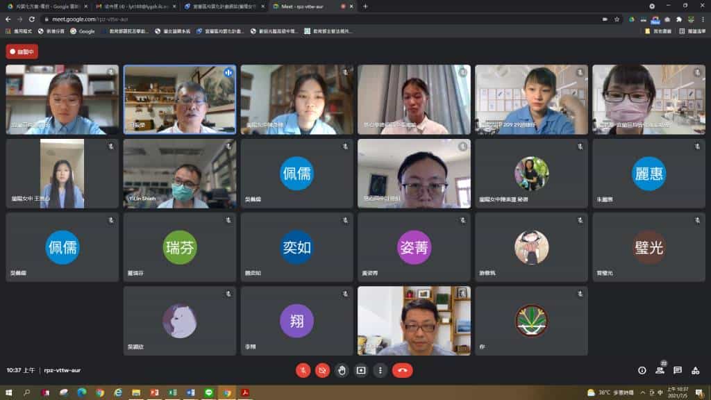 分享會開始,由蘭陽女中校長曾璧光擔任主持人,全體的同學、評審委員、各校師長共同參與開幕式,之後再比照研討會實體分流的方式,同時開啟4間會議室,再由分享同學分別至會議室中進行口頭報告與分享,再由評審委員給予分享同學指導意見。