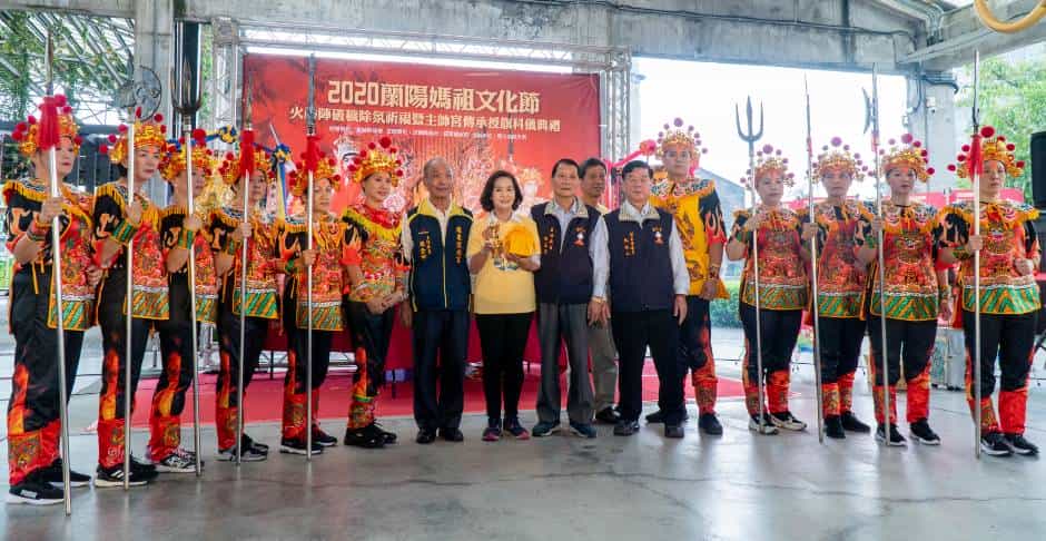 今(16)日在中興文創園區舉行火神陣暨授旗儀式,別有文化再造、文化傳承之意義,林姿妙縣長表示,2019北臺灣媽祖文化節活動圓滿成功,迴響熱烈,特別要感謝去年的主祀宫廟南方澳南天宮的大力支持,今年,將延續這份感動,邀請所有信眾,再次來到宜蘭跟隨媽祖感動的相逢。今天的主帥宫傳承授旗儀式,南方澳南天宮將主帥宫令旗交接給今年的主祀宫廟羅東震安宮,象徵要將蘭陽媽祖宗教文化精神,繼續傳承下去。