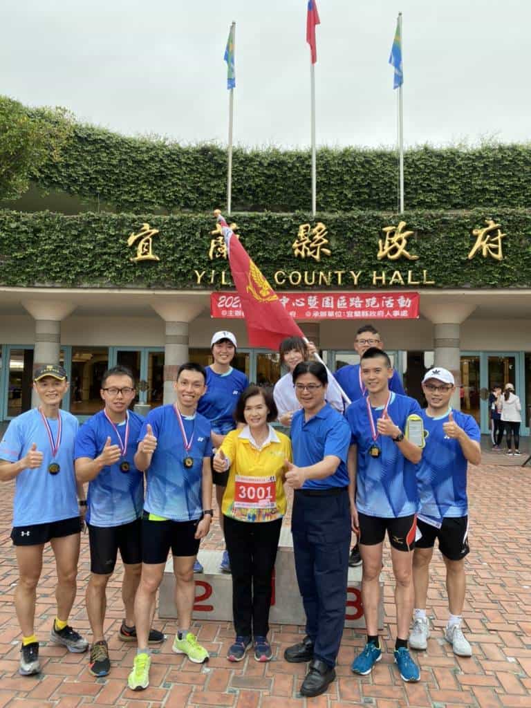 宜蘭縣政府為促進所屬員工身心健康、提倡運動風氣,於3月31日在府前廣場舉辦2021縣政中心暨園區路跑活動,警察局同仁一如往例踴躍報名參加,賽後成績揭曉計包辦男子甲組第1、2、5名;男子乙組第4、5名及女子組第5名,成績亮眼,並於頒獎典禮後與縣長林姿妙開心合影留念。